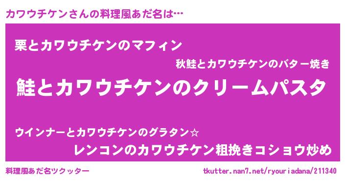 | 女子向けラノベタイトル風あだ名 | 『死神カワウチケンの再婚』 |