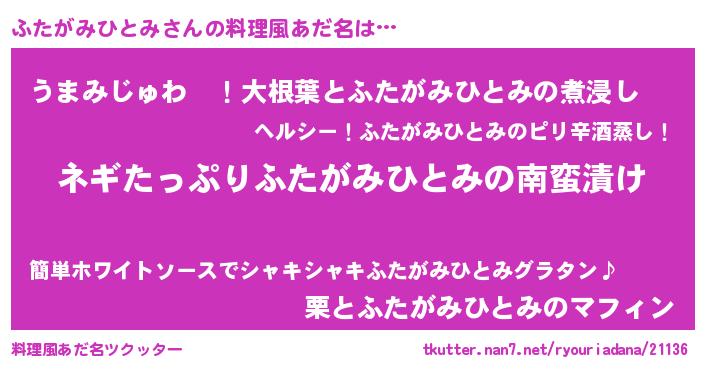 | 胡散臭い通販商品みたいなあだ名 | 『億万長者になれるブレスレット…その名も「ふたがみひとみ」』 |