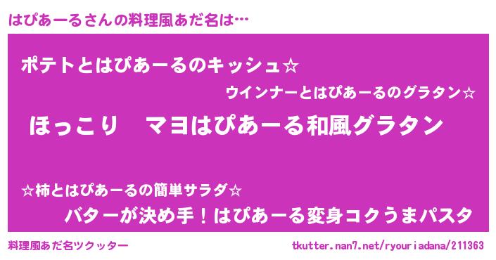 | ヒーロー風カッコイイあだ名 | 『仮面ハピダー』『幻影騎士ハピ』 |