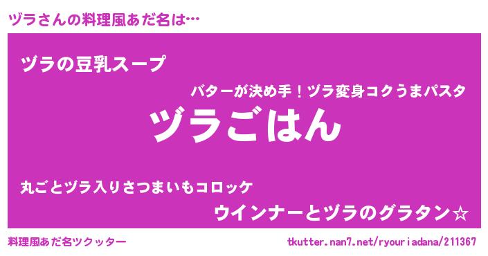 | 自動車の名前っぽいあだ名 | 『ヅールスライス』『ヅルトラパン』 |