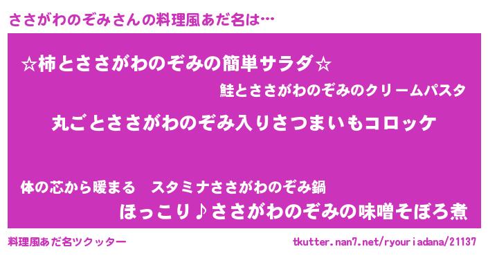 | 男性向けラノベタイトル風あだ名 | 『この素晴らしい世界にささがわのぞみを!』 |