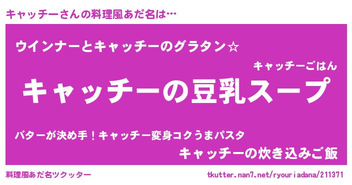 | 胡散臭い通販商品みたいなあだ名 | 『信頼と実績のサプリメント…その名も「キャッチー」』 |