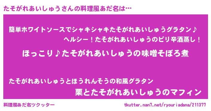 | ヒーロー風カッコイイあだ名 | 『スーパータソガレアイシュウ』 |
