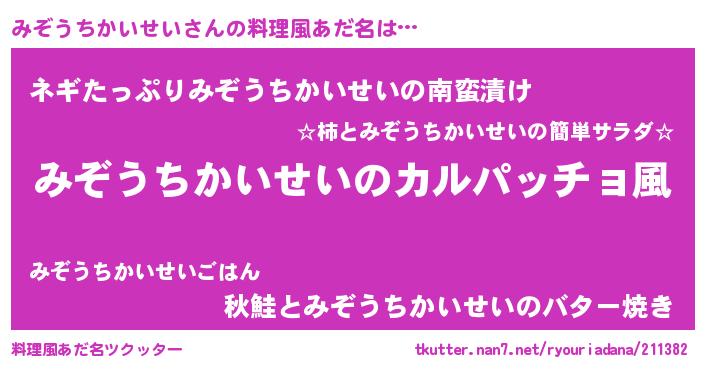| ヒーロー風カッコイイあだ名 | 『仮面ミゾダー』『ネオミゾウチカイセイ』 |