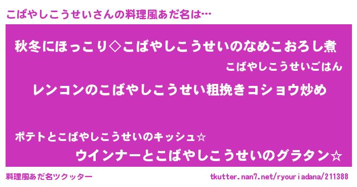 | 意味不明あだ名 | 『自称こばやしこうせい』 |