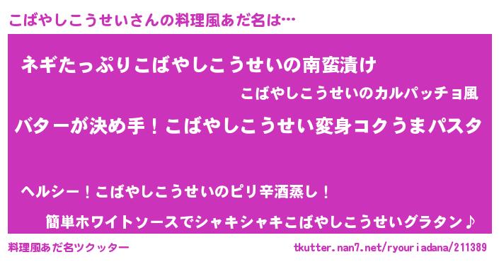| 女子向けラノベタイトル風あだ名 | 『こばやしこうせい恋絵巻』 |