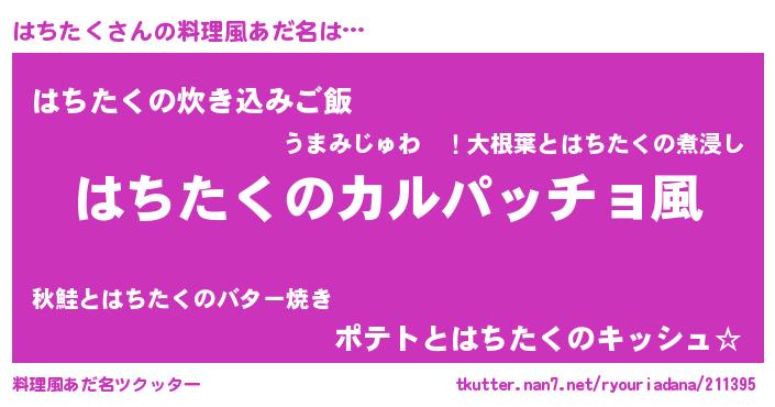 | ピコ太郎風あだ名 | 『ハチ四郎』『ピハ一郎』『ピコハ郎』 |