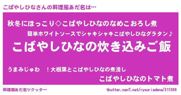 | ヒーロー風カッコイイあだ名 | 『愛の使者こばやしひな』『炎刃騎士コバ』 |