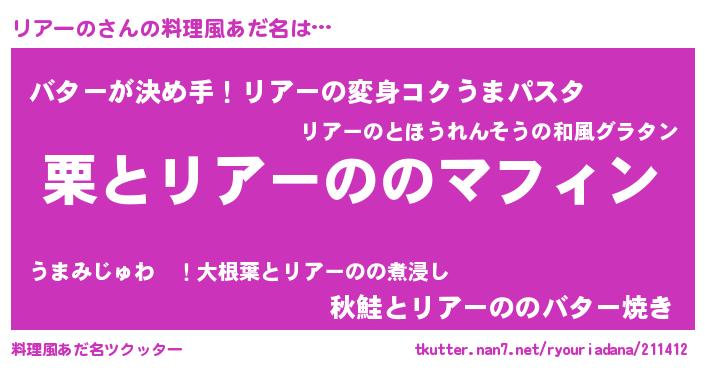 | ポケモン風あだ名 | 『リアゴンZ』『リックウザ』 |
