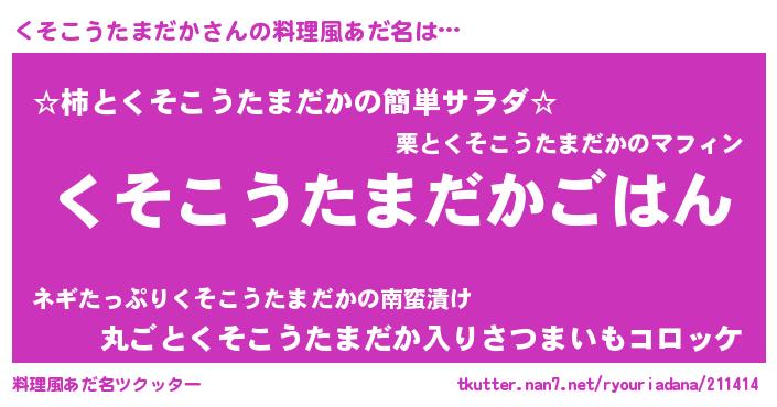| 男性向けラノベタイトル風あだ名 | 『転生したらくそこうたまだかだった件』 |
