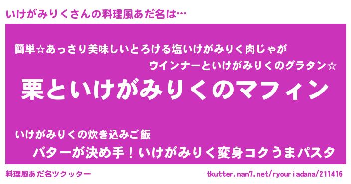 | 胡散臭い通販商品みたいなあだ名 | 『絶対に幸福をもたらす招き猫…その名も「いけがみりく」』 |