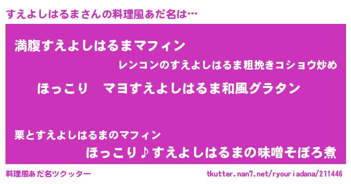 | ヘコむあだ名 | 『すえよしはるま(苦笑)』『すえにー』 |