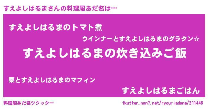 | ヘコむあだ名 | 『なまこ酢』『すえよしはるま(苦笑)』 |