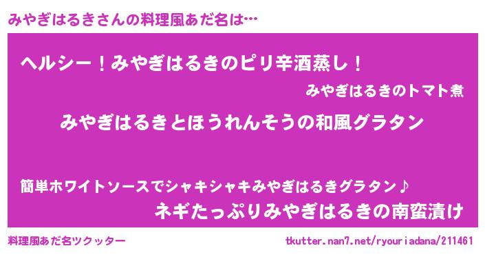 | 女子向けラノベタイトル風あだ名 | 『みやぎはるきの玉の輿計画!』 |