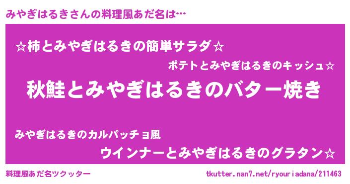 | 女子向けラノベタイトル風あだ名 | 『みやぎはるきの契約王妃』 |