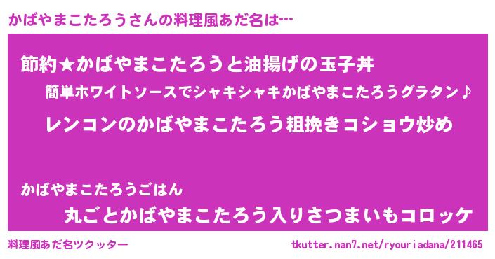 | 胡散臭い通販商品みたいなあだ名 | 『ガンによく効く高麗人参…その名も「かばやまこたろう」』 |