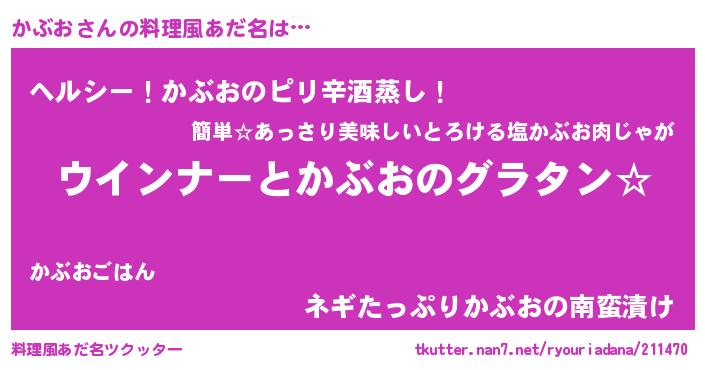 | ヘコむあだ名 | 『なまこ酢』『かぶもー』『かぶを』 |