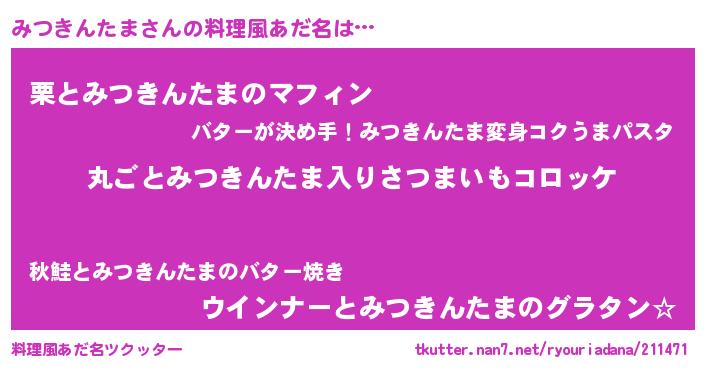 | 男性向けラノベタイトル風あだ名 | 『魔弾の王とみつきんたま』 |