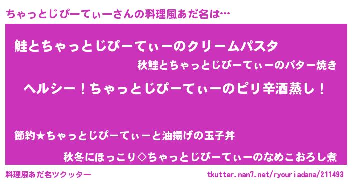 | ヘコむあだ名 | 『ちゃっとじぴーてぃー(小並感)』『ちゃを』 |