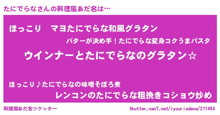 | ポケモン風あだ名 | 『タニデダネ』『ターニイ』 |