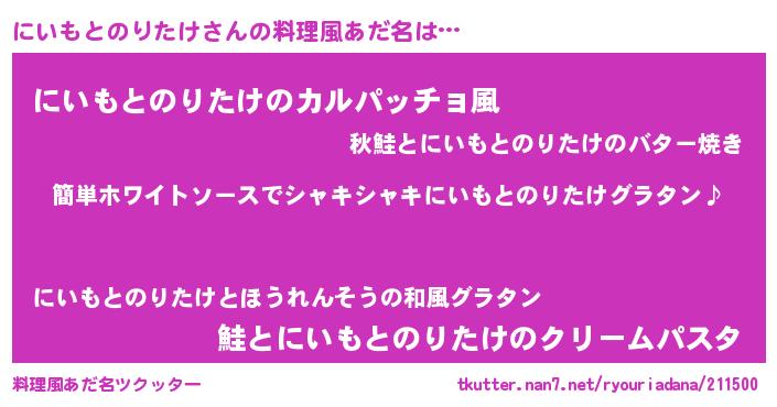 | 男性向けラノベタイトル風あだ名 | 『にいもとのりたけの嫁は女の子じゃないと思った?』 |