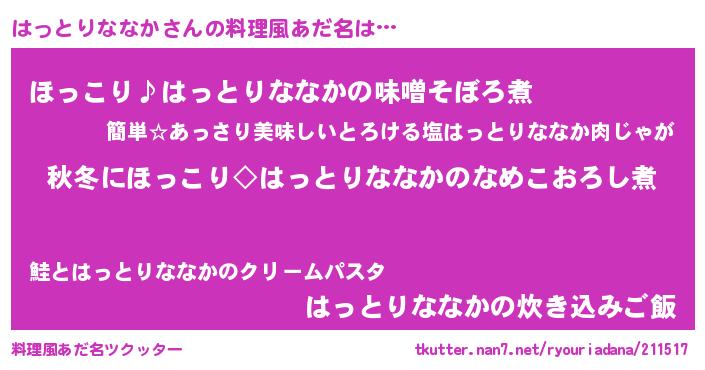 | 男性向けラノベタイトル風あだ名 | 『はっとりななかに滅ぼされるだけの簡単なお仕事です』 |