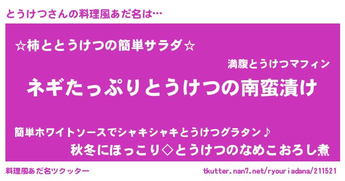 | 男性向けラノベタイトル風あだ名 | 『トウケツアートオンライン』 |