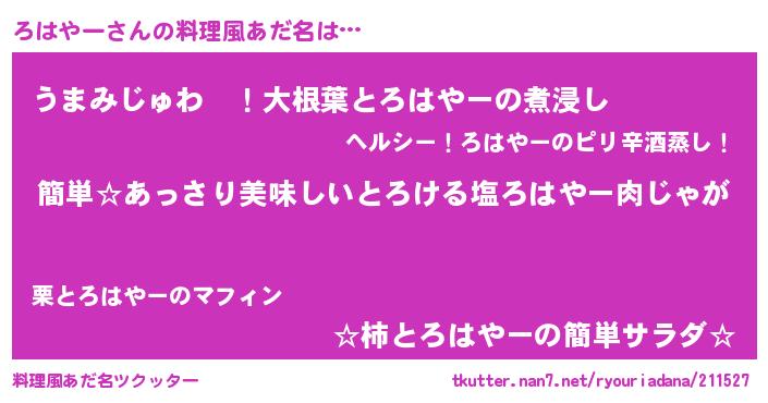 | ヘコむあだ名 | 『ろはやー(笑)』『つくし』『ろはお』 |