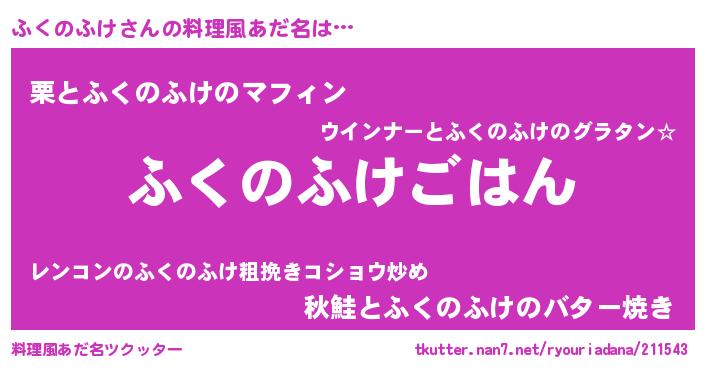 | 男性向けラノベタイトル風あだ名 | 『フクノフケスレイヤー』 |
