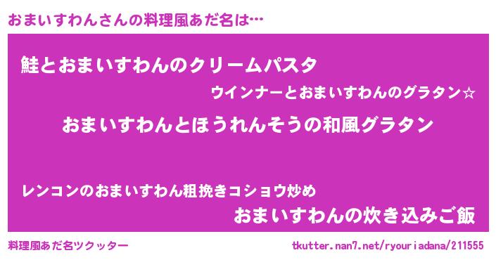 | 女子向けラノベタイトル風あだ名 | 『おまいすわんの玉の輿計画!』 |