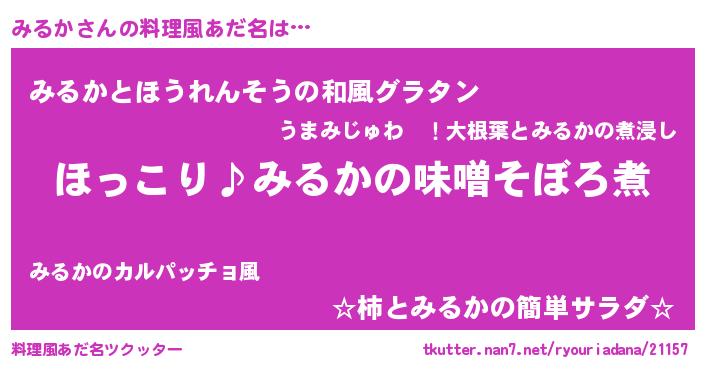 | ヘコむあだ名 | 『みるにゅー』『なまこ酢』 |