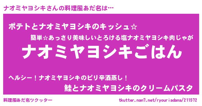 | ヘコむあだ名 | 『ナオっちょ』『ナオミヤヨシキ(笑)』 |