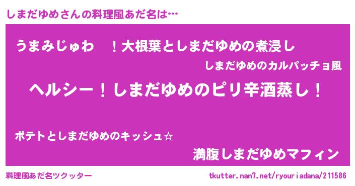 | ヘコむあだ名 | 『なまこ酢』『しまだゆめ(遠い目)』 |