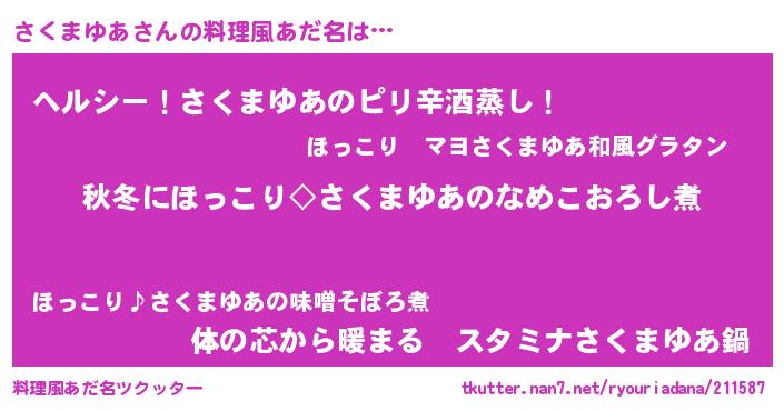 | 男性向けラノベタイトル風あだ名 | 『さくまゆあに滅ぼされるだけの簡単なお仕事です』 |