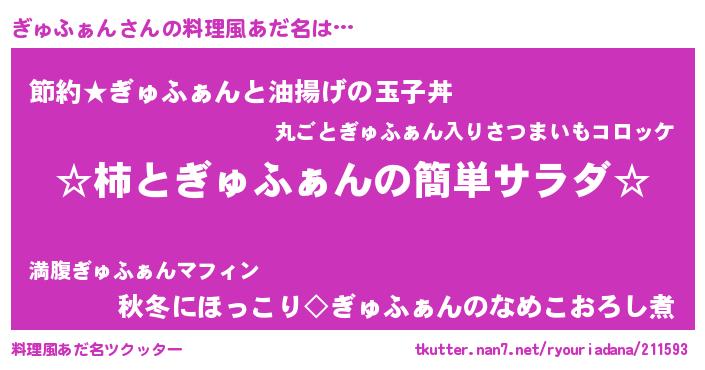 | 胡散臭い通販商品みたいなあだ名 | 『必ず成功する水晶球…その名も「ぎゅふぁん」』 |