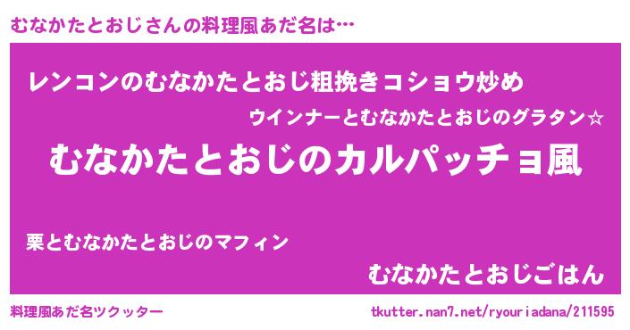 | 意味不明あだ名 | 『住所不定無職むなかたとおじ(10歳)』 |