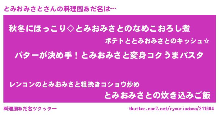 | 女子向けラノベタイトル風あだ名 | 『とみおみさと恋絵巻』 |