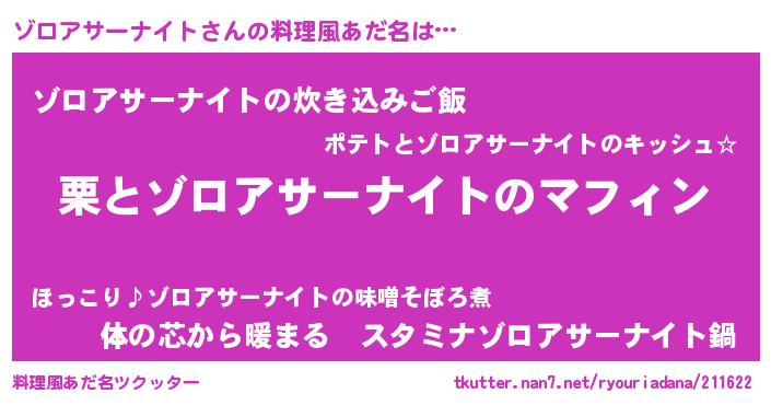 | 男性向けラノベタイトル風あだ名 | 『はたらくゾロアサーナイトさま!』 |