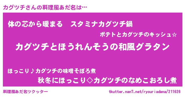 | ポケモン風あだ名 | 『カグキング』『カグツダネ』 |