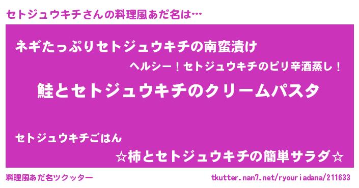 | 男性向けラノベタイトル風あだ名 | 『ノーゲーム・ノーセトジュウキチ』 |