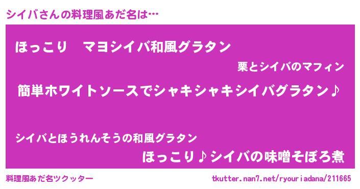 | 男性向けラノベタイトル風あだ名 | 『シイバの嫁は女の子じゃないと思った?』 |