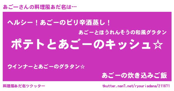 | 意味不明あだ名 | 『とにかく怪しいあごー』『自称あごー』 |