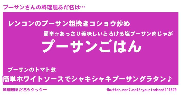 | 男性向けラノベタイトル風あだ名 | 『転生したらプーサンだった件』 |