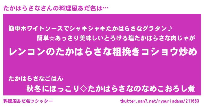 | 胡散臭い通販商品みたいなあだ名 | 『テレビで話題の高麗人参…その名も「たかはらさな」』 |
