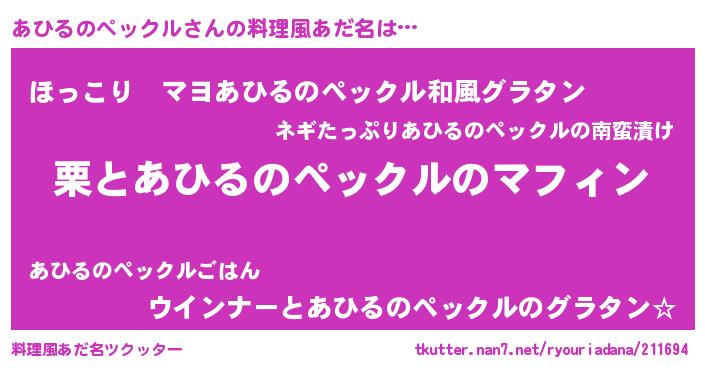 | 欧米人風あだ名 | 『アンジェラ・あひるのペックル』 |