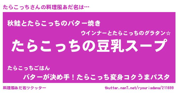 | 女子向けラノベタイトル風あだ名 | 『たらこっちは平凡を望む』 |