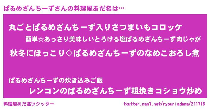 | 男性向けラノベタイトル風あだ名 | 『ぱるめざんちーずに滅ぼされるだけの簡単なお仕事です』 |