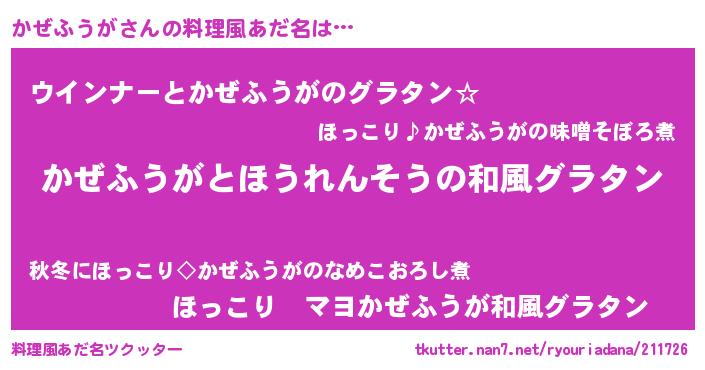 | 意味不明あだ名 | 『ニラ科かぜふうが属』『自称かぜふうが』 |