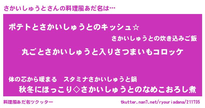 | 意味不明あだ名 | 『住所不定無職さかいしゅうと(3歳)』 |