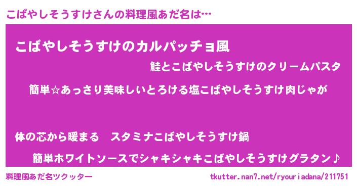 | ヘコむあだ名 | 『こばやしそうすけ(苦笑)』『こばお』 |